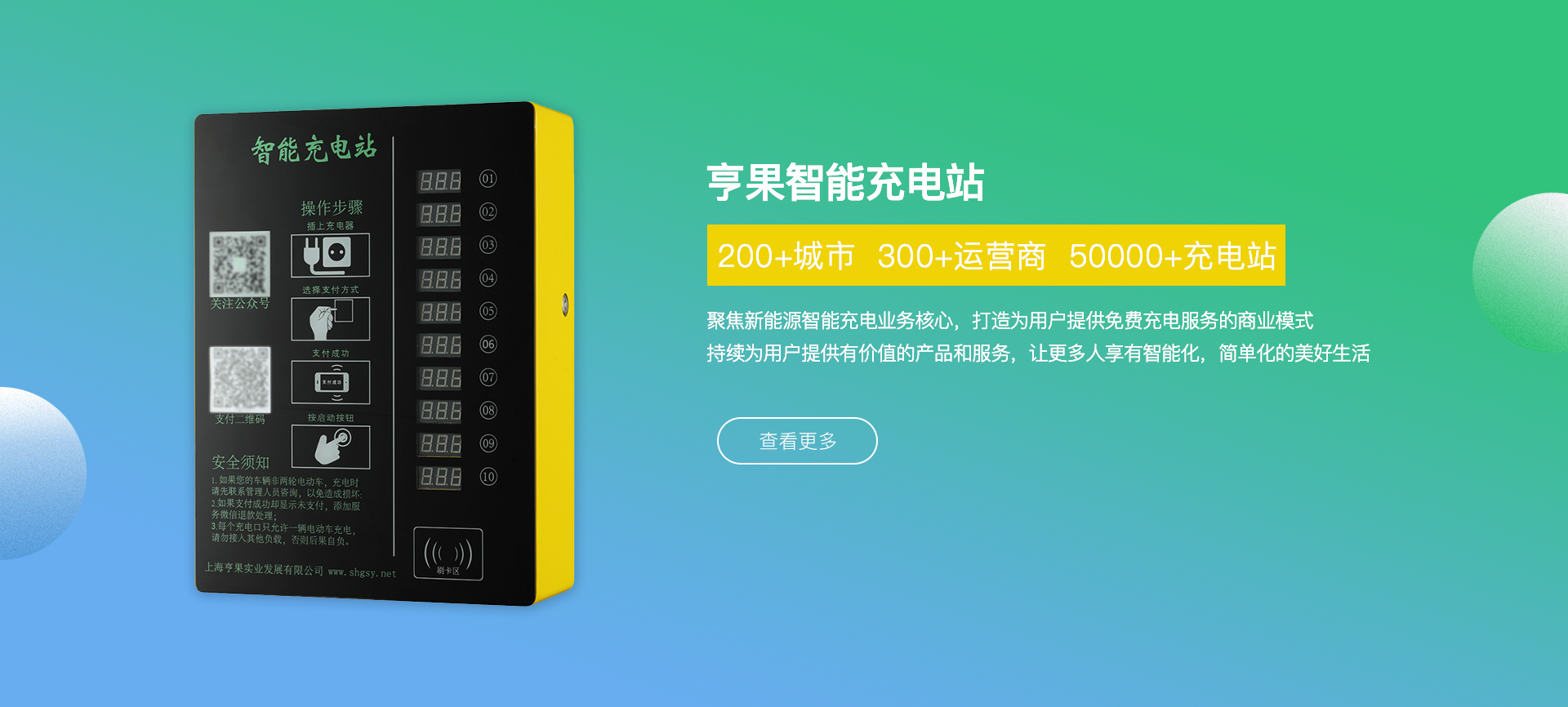 公司總部位于上海市青浦區(qū)趙巷新城經(jīng)濟(jì)開發(fā)區(qū),專注于新能源智能充電操作系統(tǒng)、智能電動(dòng)車充電樁、充電樁行業(yè)運(yùn)營(yíng)管理平臺(tái)等多類相關(guān) 產(chǎn)品的研發(fā)、設(shè)計(jì)、銷售和運(yùn)營(yíng),產(chǎn)品現(xiàn)已廣泛應(yīng)用于國(guó)內(nèi)各城市居民社區(qū)、高校、及商業(yè)綜合體車輛聚集區(qū)域及市政配套領(lǐng)域。